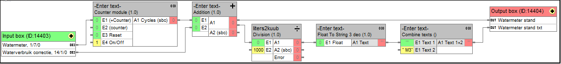 Waterverbruik correctie 14/1/0 is bedoelt om met ETS een waarde naar betreffende correctie te kunnen sturen zodat in de HS app de waarde van de watermeter wordt weergegeven.
