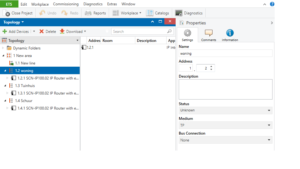 De bovenstaande configuratie heb ik ook al even op een testproject gezet in ETS5.